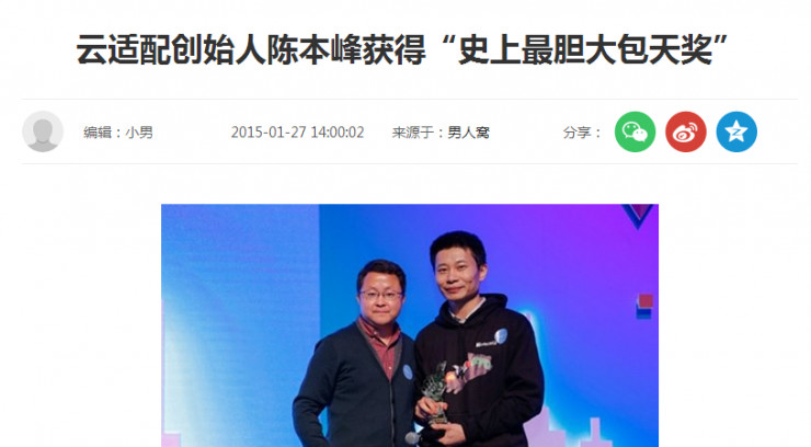 諷刺的是,其創始人陳本峰 2015 年在微軟任職時,還曾因為技術創新被頒發過“史上最膽大包天”獎,如此看來,這個獎項真是名副其實。