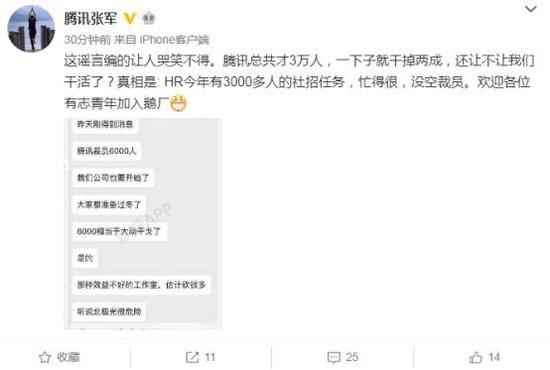 關于騰訊裁員的流言也貫穿了整個9月。9月初,曾有傳聞稱騰訊將裁員6000人,騰訊公關總監張軍辟謠稱:“HR今年有3000多人的社招任務,忙得很,沒空裁員。歡迎各位有志青年加入鵝廠”。