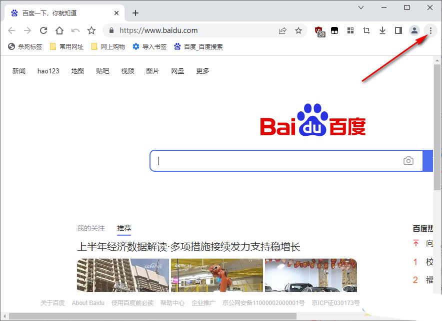 1、我們在電腦中打開百分瀏覽器,然后在瀏覽器頁面右上角打開三個豎點圖標(biāo)