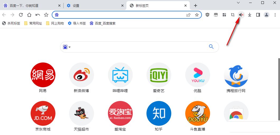 5、打開“顯示瀏覽器靜音按鈕”選項的開關(guān)按鈕之后,我們在打開有聲音的網(wǎng)頁或是標(biāo)簽頁之前在工具欄中點擊喇叭圖標(biāo),將其切換為靜音狀態(tài)即可,我們也可以使用快捷鍵“Alt+shift+M”鍵進(jìn)行靜音和接觸靜音兩種狀態(tài)的切換