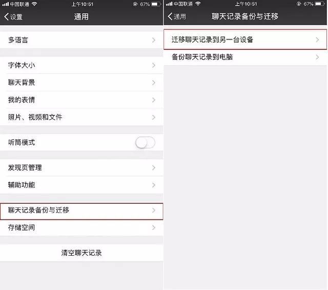 在微信界面"我—設置—聊天"中點擊"聊天記錄遷移"功能,但是一定要記得遷移的兩臺設備必須在同一WiFi下,這樣才能做出數據搬遷操作。