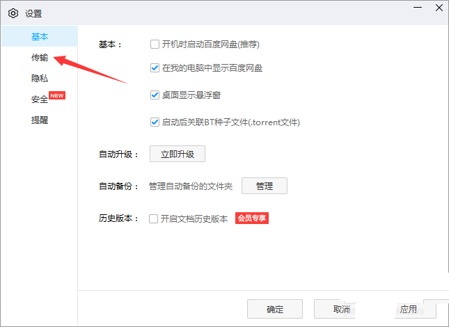 點(diǎn)擊了菜單中的 設(shè)置 選項(xiàng)選中為 設(shè)置點(diǎn)擊左側(cè)中的 傳輸點(diǎn)擊 高級設(shè)置點(diǎn)擊 有傳輸任務(wù)時(shí)電腦不休眠 選項(xiàng)。