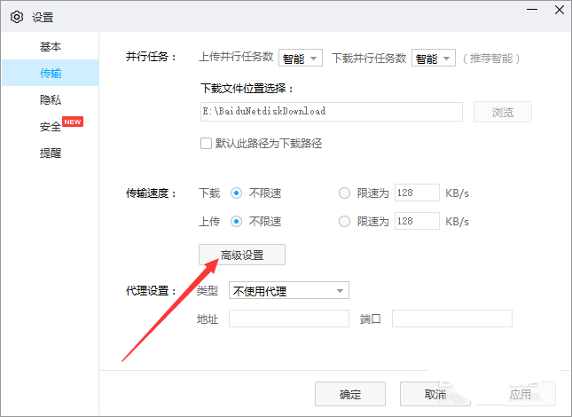 5、點(diǎn)擊左側(cè)中的 傳輸之后,點(diǎn)擊高級設(shè)置