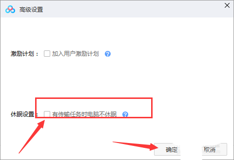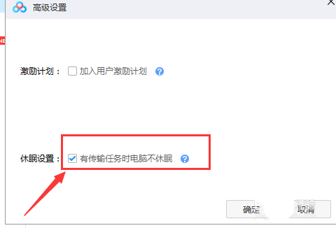 6、進(jìn)入到了高級設(shè)置界面中,點(diǎn)擊有傳輸任務(wù)時(shí)電腦不休眠選項(xiàng)