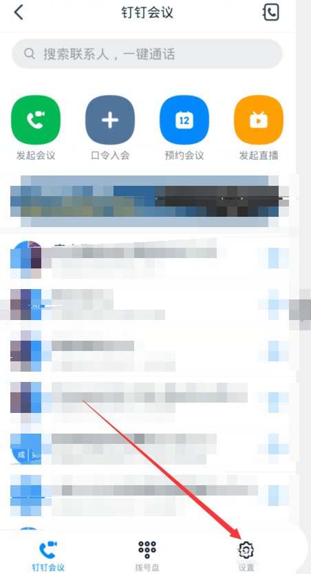 第二:進入釘釘會議選項頁面點擊右下角的【設置】按鈕。