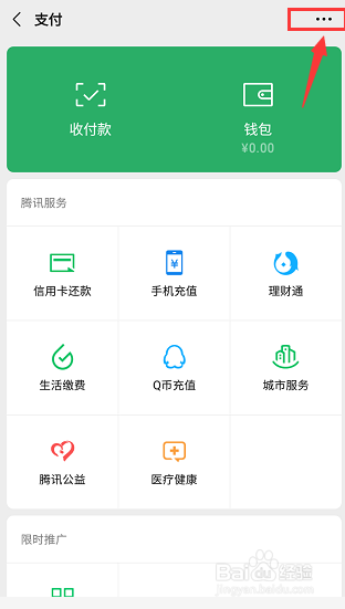 點擊支付右上角的三個點,如下圖所示