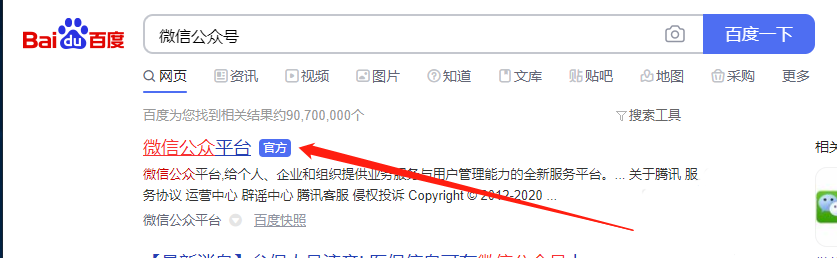 1、進(jìn)入百度,在百度搜索欄中搜索【微信公眾號(hào)】