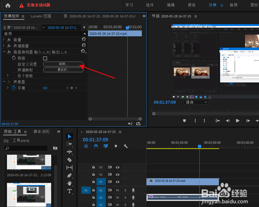 5.再點擊進入效果控件,點擊自定義設置中的編輯。