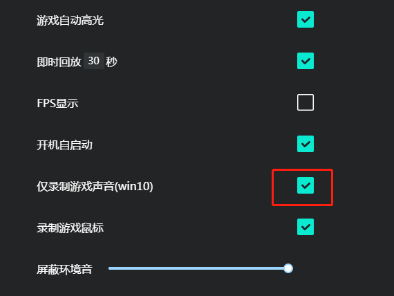 5、點【擊僅錄制游戲聲音右側的方框完成此功能的設置】