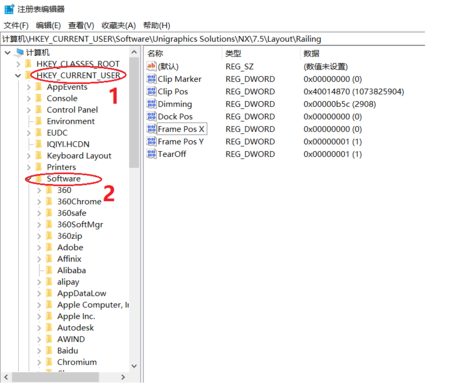 HKEY_CURRENT_USER → Software → Unigraphics Solutions → NX7.5 → Layout → Railing