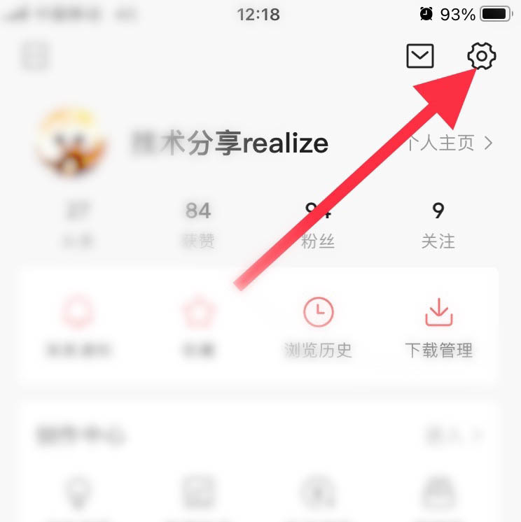 1、打開今日頭條,進入“我的”頁簽,點擊右上角的設置圖標