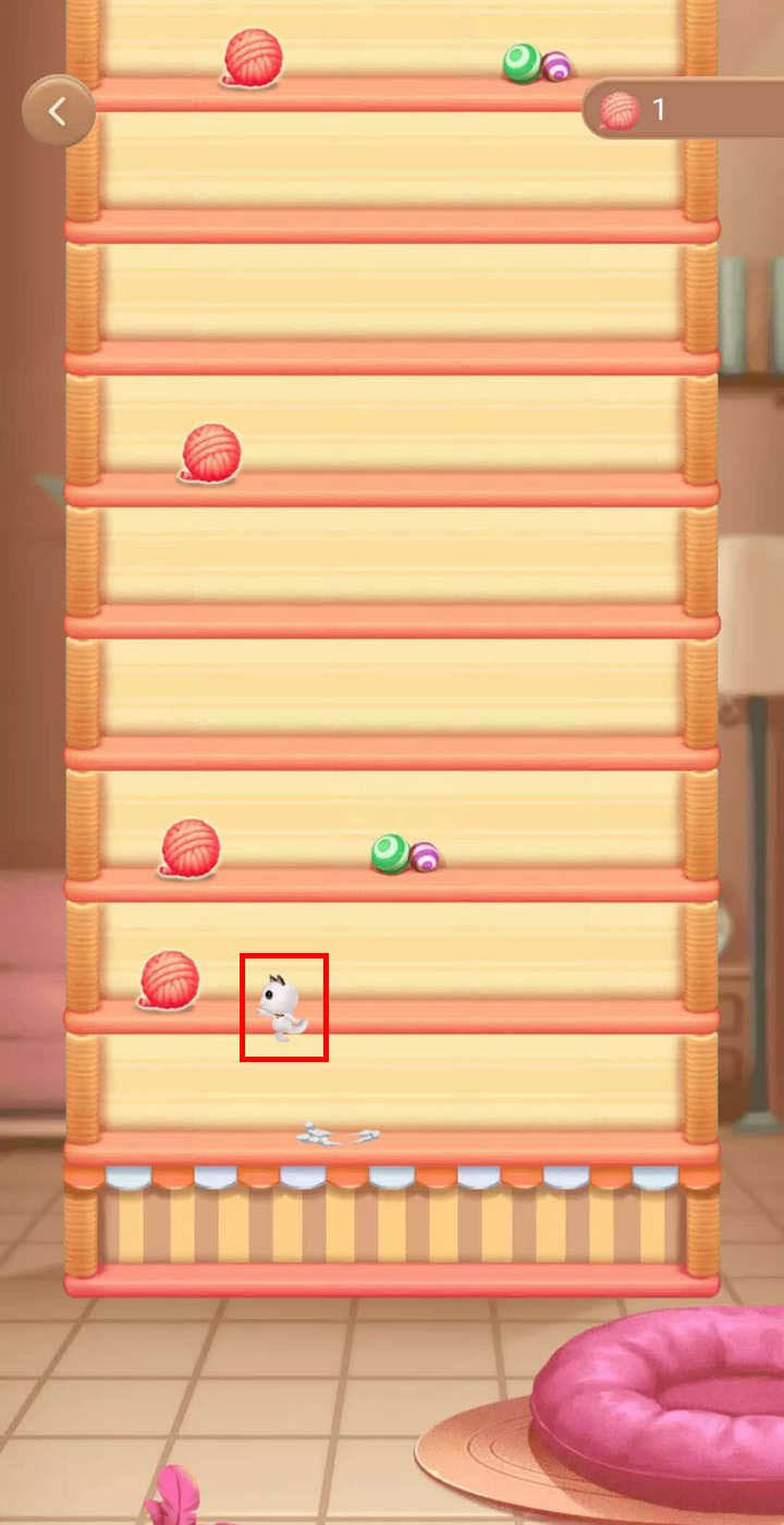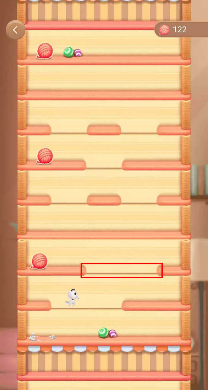 5、貓架缺口大小不一,要把握好節(jié)奏,再往高貓架兩端開始出現(xiàn)缺口,此時難度就比較大了,一旦貓貓從缺口出去,游戲就結(jié)束了;