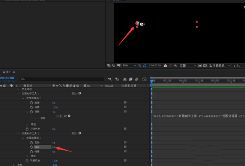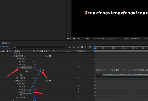 7、最后給便宜打上關鍵幀即可實現下劃線字體輸入的動畫效果。