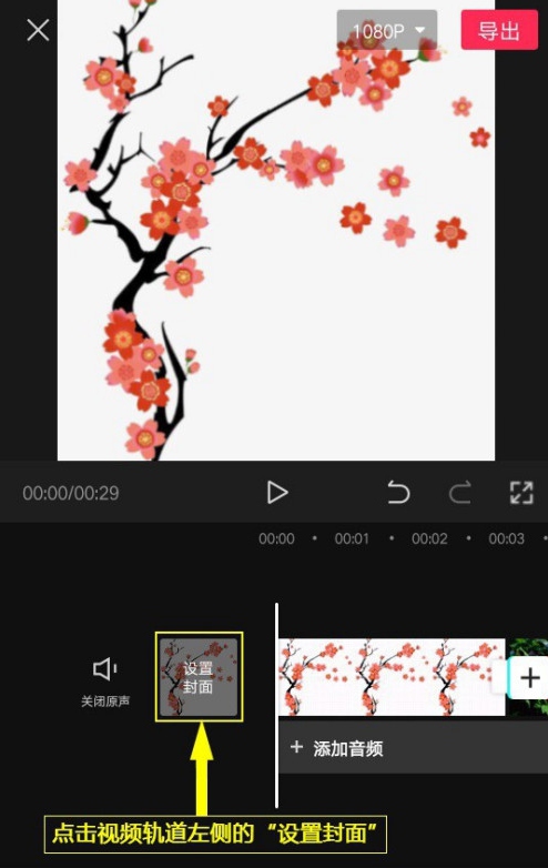 7、設(shè)置封面。點擊視頻軌道左側(cè)的“設(shè)置封面”,設(shè)置吸引他人關(guān)注的封面。