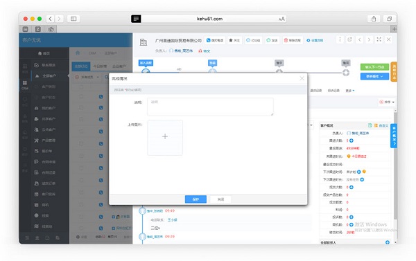 流程設置好后,在客戶詳情里就會出現流程節點。
