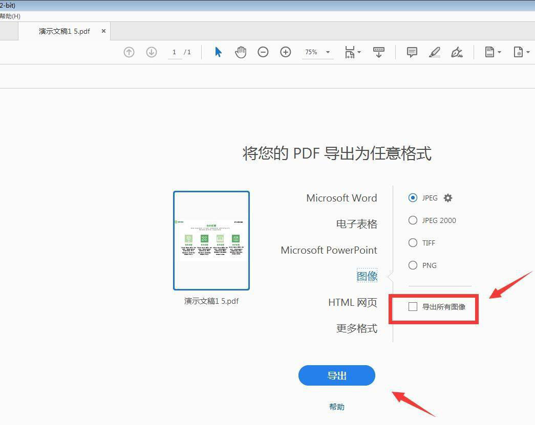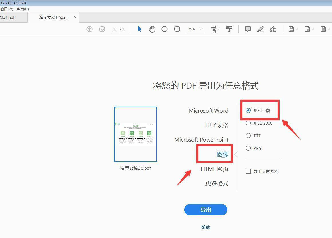 選擇圖像,導出格式選擇jpg,可以導出所有頁面。