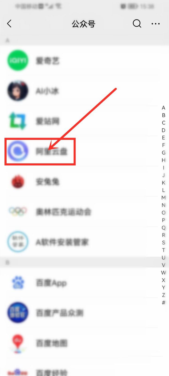 打開微信公眾號列表,選擇要設置的公眾號進入。