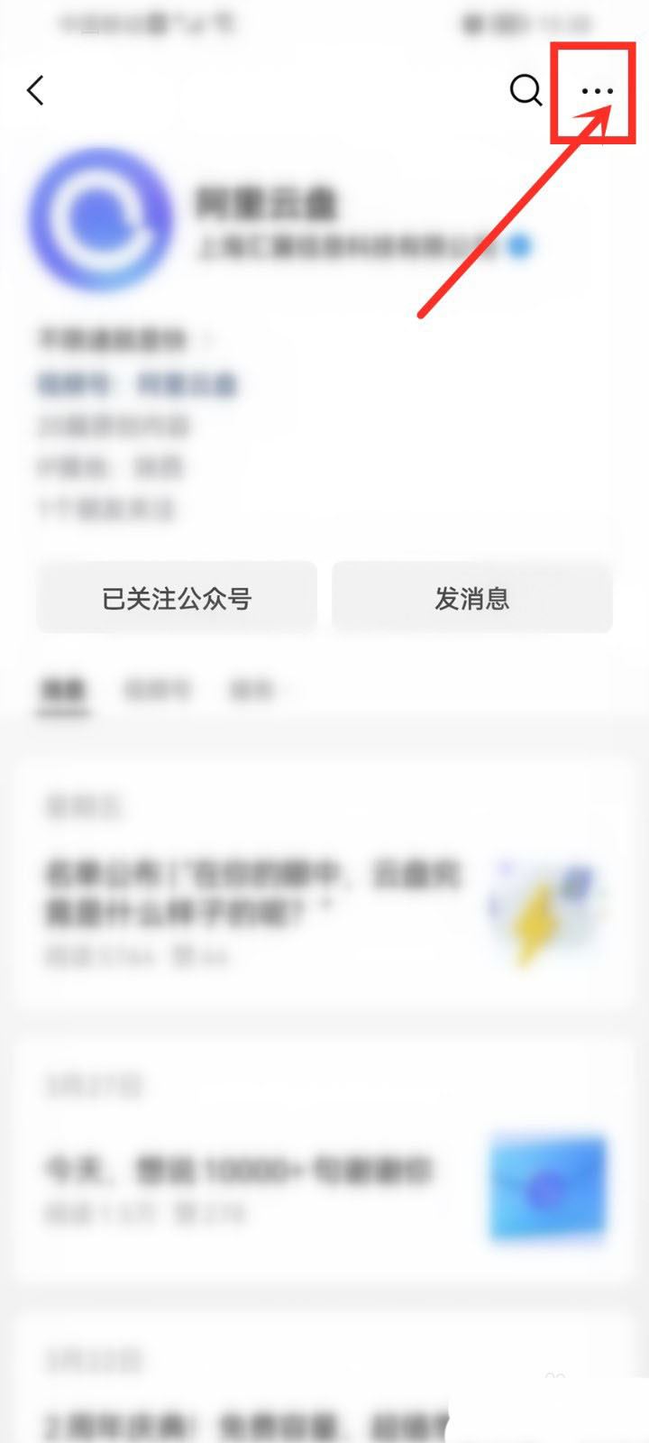 在公眾號主頁,點擊右上角“三個點”圖標。
