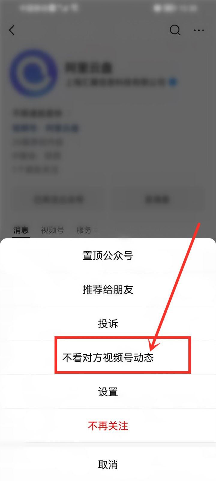 選擇“不看對方視頻號動態”選項,即可設置不看公眾號的視頻號。