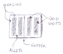 當(dāng)你將頁(yè)面的內(nèi)部空間(版心)分割為幾個(gè)均等部分后,每個(gè)單元之間的白空間就稱(chēng)為"Alley" (欄空)。欄空的方向是水平的、垂直的、或是兩個(gè)方向兼有,取決于你的柵格設(shè)置。在某些設(shè)計(jì)軟件中,也稱(chēng)之為白空間或文本欄的"gutter"(內(nèi)邊距)。