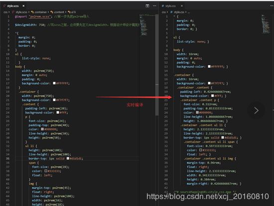 同時打開style.css,可以看到,style.scss文件上的內容會實時編譯到style.css'